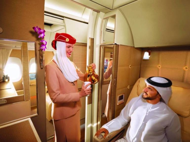 Emirates, die weltweit größte internationale Fluggesellschaft, gab bekannt, dass sie ihren Kunden jährlich über 170 Tonnen hochwertigen Kaffee serviere. Reisende können eine Vielzahl an handgefertigten Kaffeespezialitäten genießen, wozu auch die charakteristische Mischung aus traditionellem arabischem Kaffee gehört. Dieses besondere Kaffeeerlebnis ist sowohl an Bord als auch in den Emirates-Lounges verfügbar und erstreckt sich über 140 Destinationen weltweit.